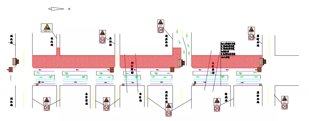 区域内南北向车辆可借华杨南路、迎周路、永共路、青阳路保通道路绕行;