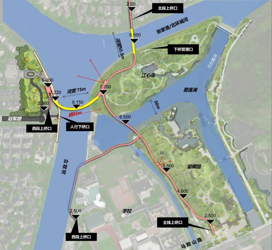 项目位于亭林公园西北角河心岛,主要建设2座景观桥,北跨桥连接水秀路,西跨桥连接冠军路,同步增设灯光等景观工程。桥梁贯通后将进一步丰富群众慢行体验,同时增强老城区与城西、城北区域的融合度。项目总投资约9000万元。