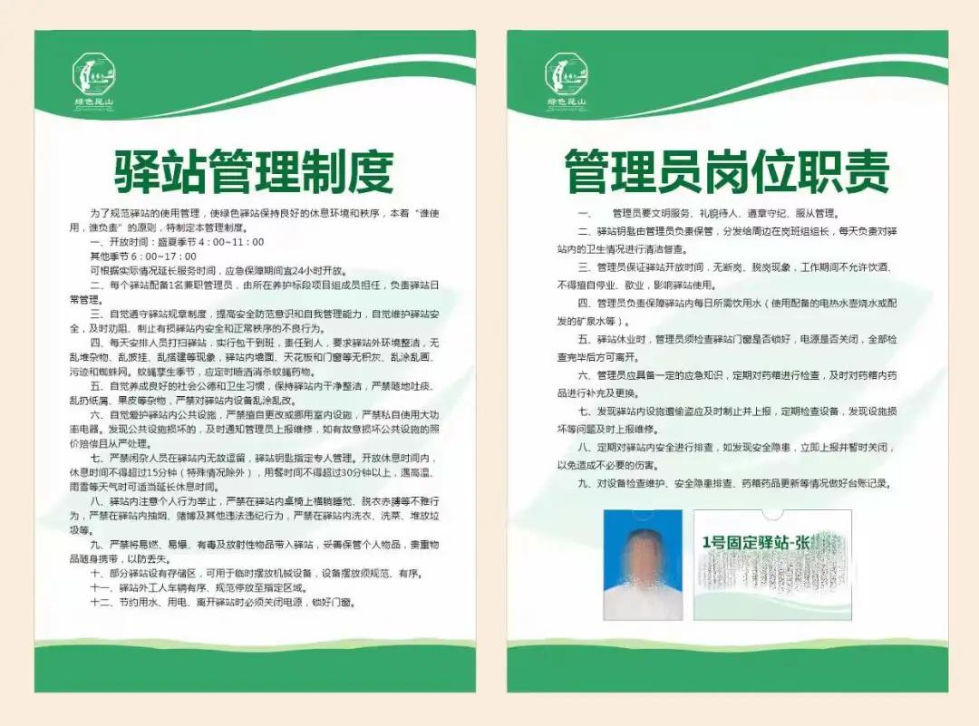 为维护和管理好“小薇·绿色驿站”市绿化管理部门制定了使用管理制度,并明确每个驿站的管理责任人,确保制度上墙、确保责任到人,确保把好事办好,以规范管理和长效机制持续释放驿站暖心能量。