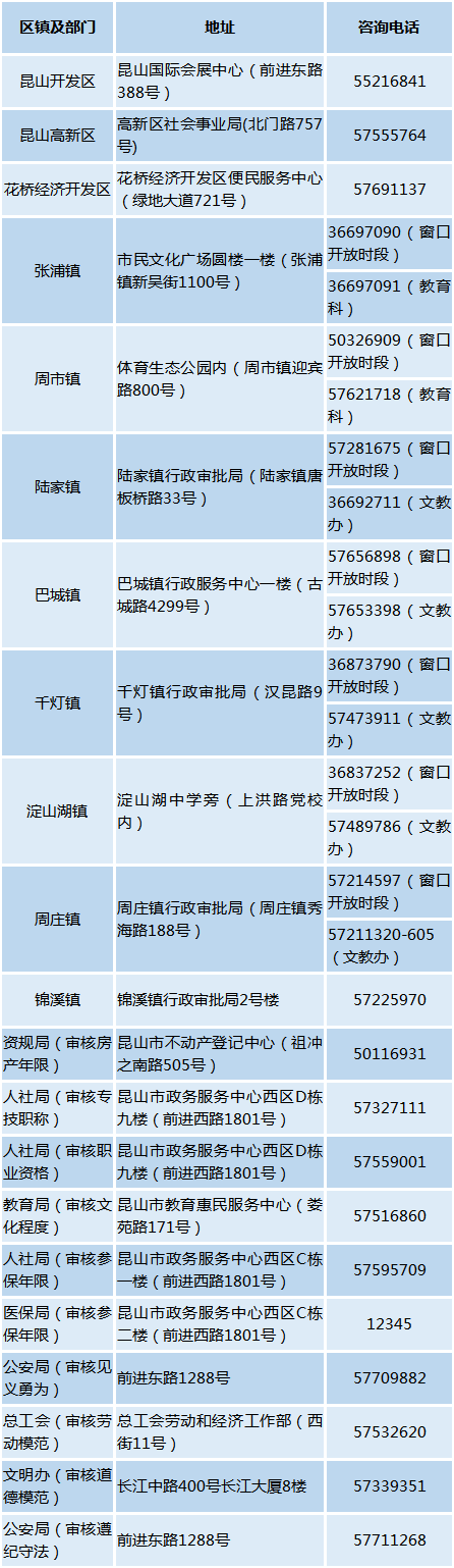 (1)相关信息均在中国昆山网(www.ks.gov.cn)上公布;(2)窗口初审至各区镇便民服务中心。