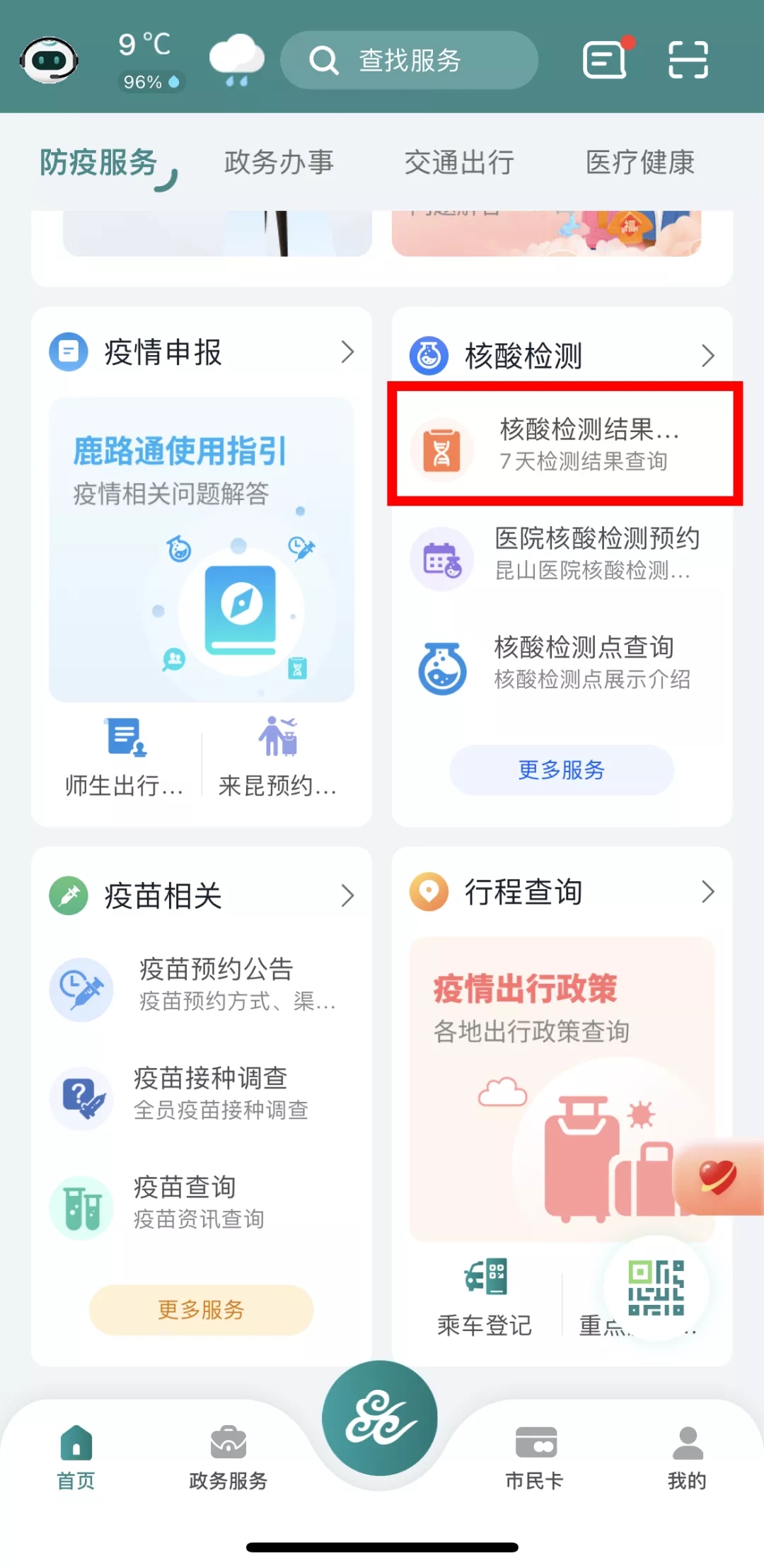 2.打开“昆山市民”APP,点击“核酸检测结果查询”即可查询。