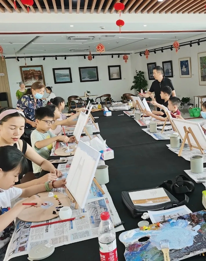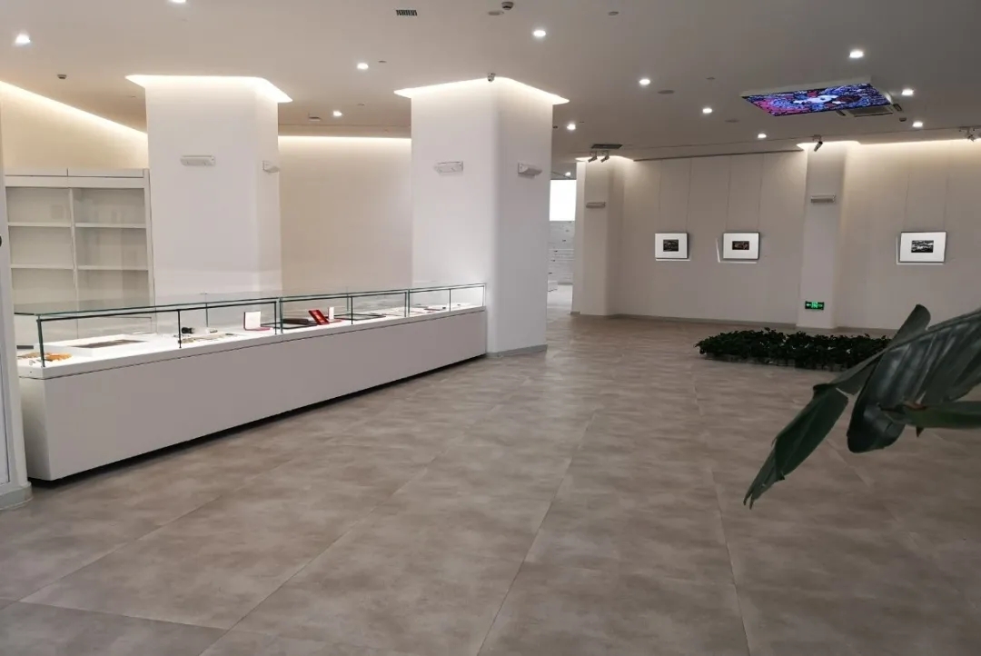 昆山版画艺术馆坐落于大渔湾,馆内分为上下两层,一层为常设展厅,二层设特展展厅,规划有序厅、展厅、休闲厅等功能区块实现艺术活动、教育兼备的展示空间规划。展厅整体空间以画作中的黑白灰为主体基调展现艺术馆的专业性与品质感,塑造一个简洁、高效、清晰、通透的展示空间。