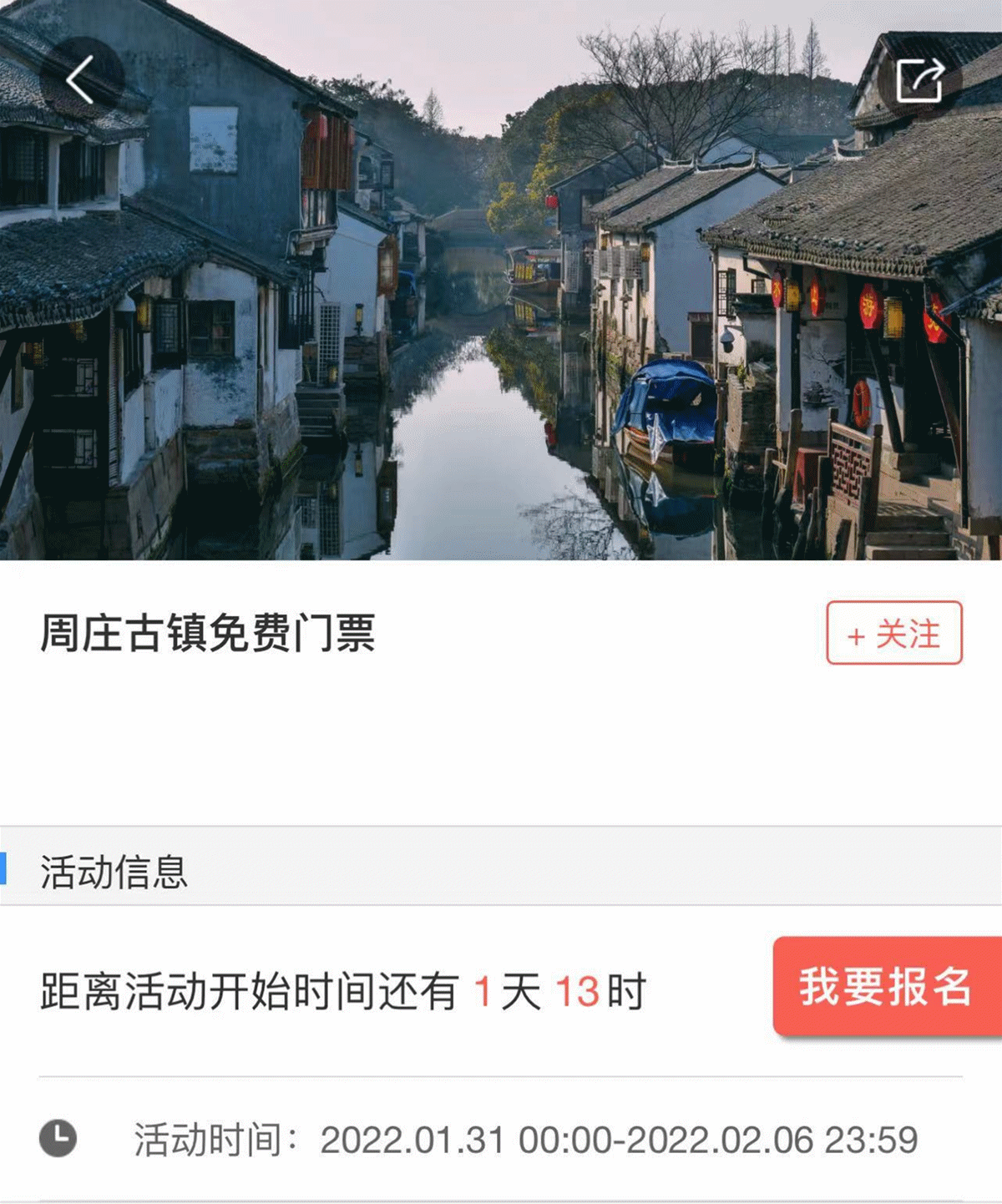 2.周庄古镇景区门票请于前一天20:00前预约!