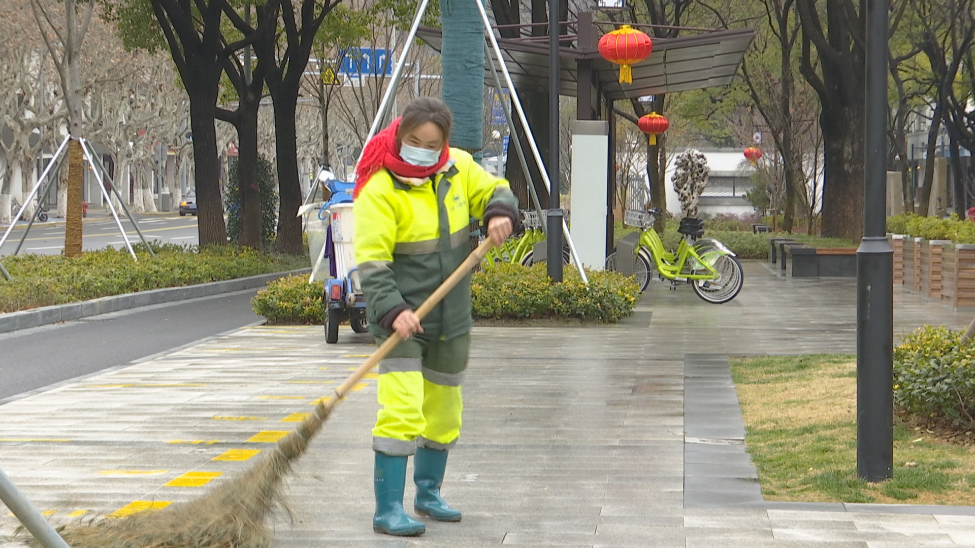 春节假期,街上行人、景区游客数量明显增多,环卫工人的工作强度也随之变大,全市2300多名环卫工人坚守一线,给市民创造干净整洁的环境。