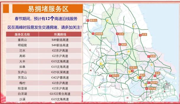 受降雪影响的路段有:宿淮盐、宁宿徐、宁靖盐、连徐西段、宁连、宁常镇溧、宁杭、宁通、泰州大桥、润扬大桥、京沪高速、东部高速、绕越、南京四桥、长江三桥、沪宁、锡宜等;由于淮河以南中西部部分地区降雪量较大,会出现积雪,需注意行车安全,提前做好出行规划。