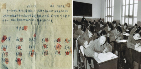 ▲小岗村集体手印(左)恢复高考(右)