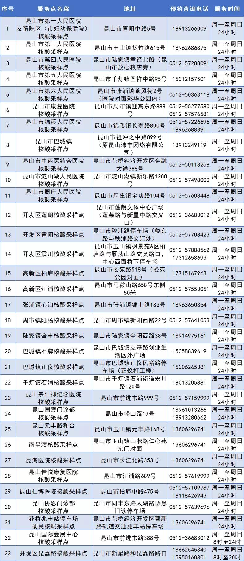 昆山市新冠病毒核酸检测采样服务点