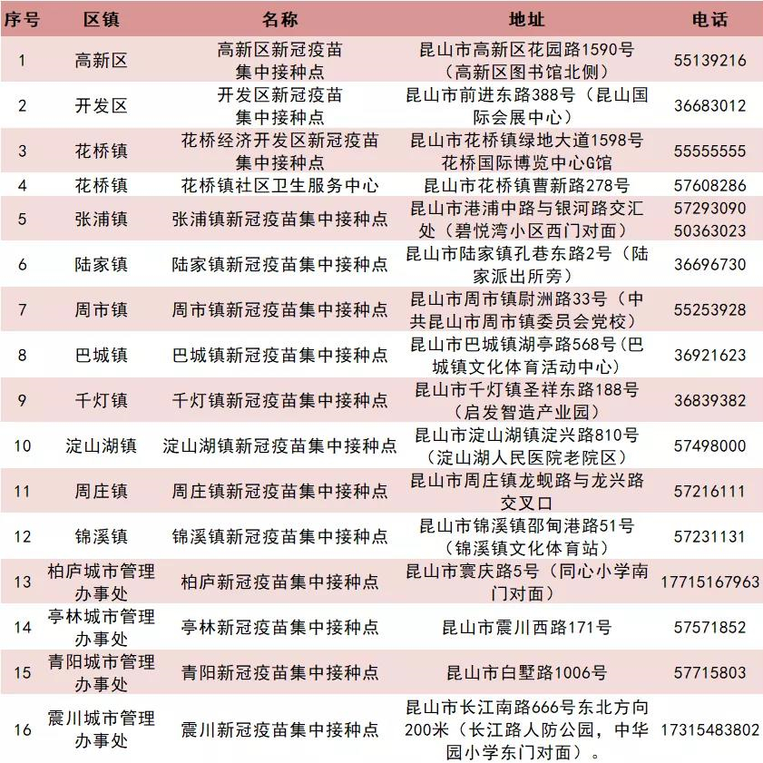 昆山市新冠病毒疫苗接种点信息