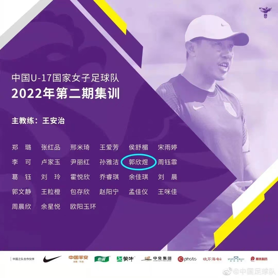 我市女足小将郭欣煜入选U-17国家女子足球队2022年第二期集训名单