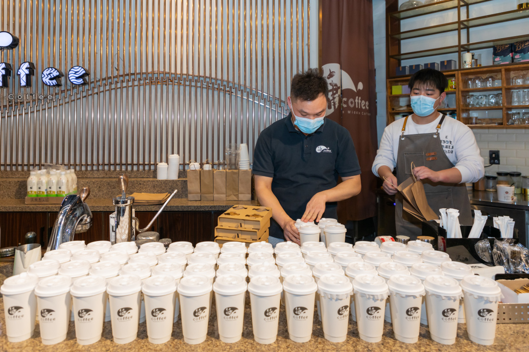 镛Coffee(大戏院店)也参与了当天的爱心配送。“这80杯超大杯热拿铁,是送给第一人民医院24小时采样点及发热门诊的医护人员的。”王钟汉说,尽管和同事分工协作耗时近2小时才完成这些咖啡,但他们内心十分骄傲和高兴。记者看到,他们还贴心地在外送袋上写下“辛苦了!”“昆山加油!”等暖心字样,向医护人员表达谢意。