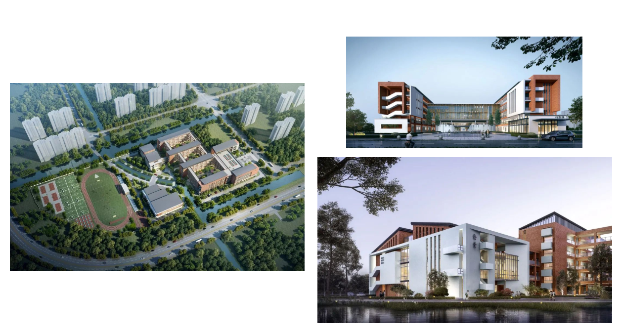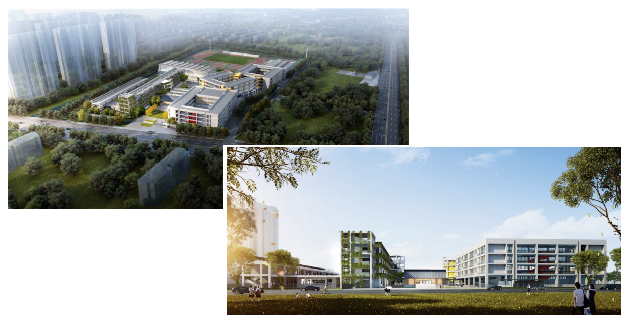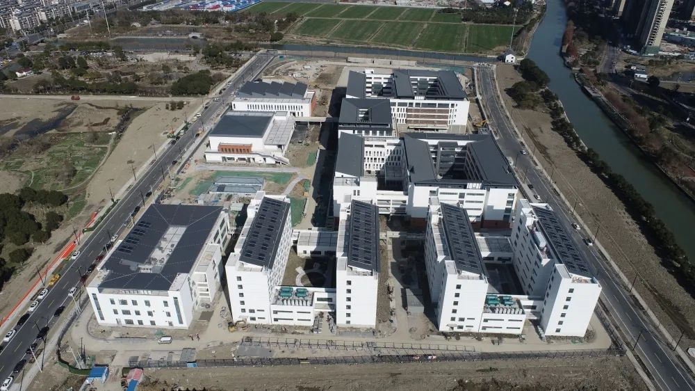 周市高级中学位于周市镇超英西路西侧、华杨南路东侧、新塘河北侧,占地114.7亩,建筑面积8.5万平方米,包括教学楼、实验楼、综合楼、报告厅及艺体楼、食堂、男女生宿舍、地下车库及设备用房等,办学规模16轨48班(预留4轨12班),计划2022年5月竣工。