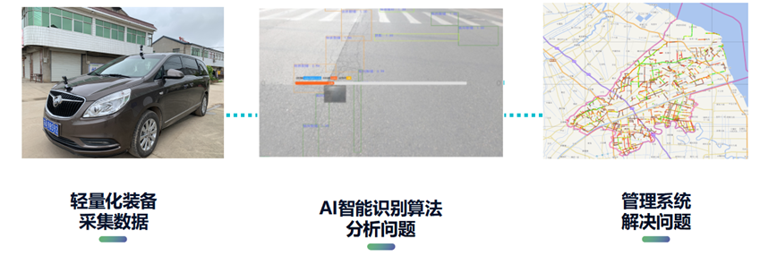如滨海县以机动车辆为平台,配备自动化、快速化的数据采集设备,在正常车流速度下可以自动、快速地釆集主要路况指标。该设备以AI智能识别算法技术为核心,融合高清晰图像、振动传感器和面阵激光雷达等传感器检测技术,辅以GPS和里程计定位技术,可自动识别裂缝、龟裂、坑槽等沥青路面病害,以及破碎板、板角断裂、边角剥落、坑洞等水泥路面主要病害,实现“自动化、快速化、智能化”的高速精确探测。
