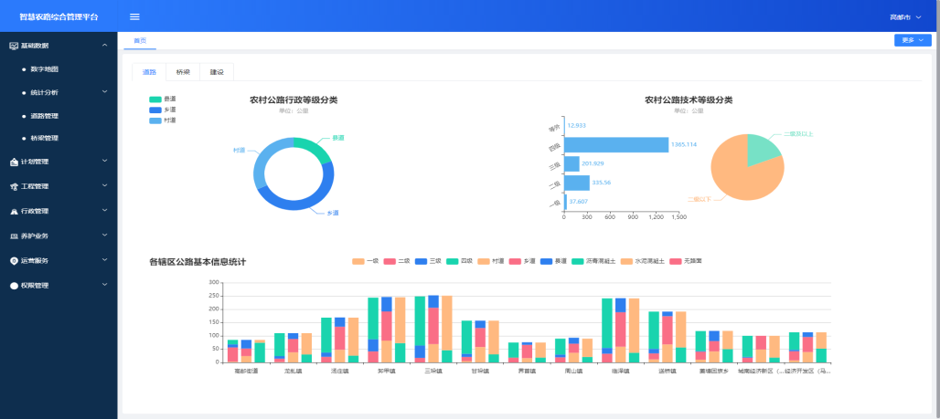 目前,在农村公路养护中采用信息化技术实施管理的方式,在全省许多地区都有应用。如扬州高邮公路交通部门采用了“互联网+农路”模式,建立了以数据为基础、应用为主线的农村公路“建、管、养、运”“一网一平台”综合管理系统。该系统将农村公路所有相关数据,进行计算指标得分,并按需求进行分级,绘制出指标走势图与等级比例图等,自动生成报表、报告等,实现了基础数据随手可查、项目全面管控、日常养护快速高效、运营状态动态掌握的目标。身处办公室可随时调用服务器中存储的道路各类数据信息。