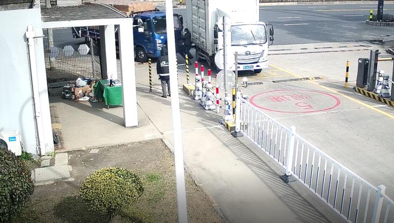 通过询问,了解到受伤男子是蓝色货车的驾驶员,他下车到门岗进行登记的时候,忘记把车辆的手刹拉起。当发现车辆溜车,快要撞到左前方的一辆白色厢式货车时,他本能地用身体去挡住自己的车辆。