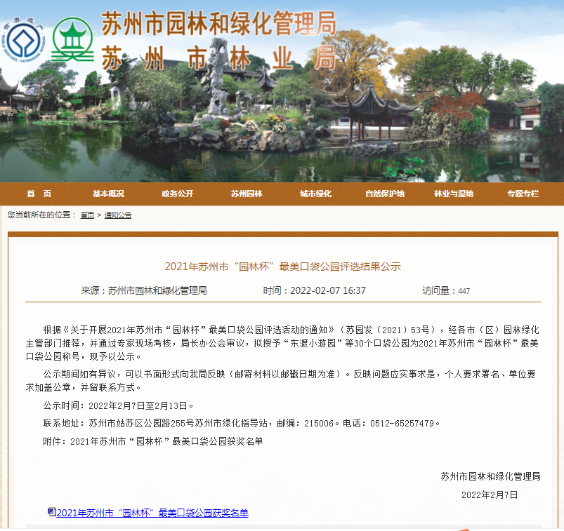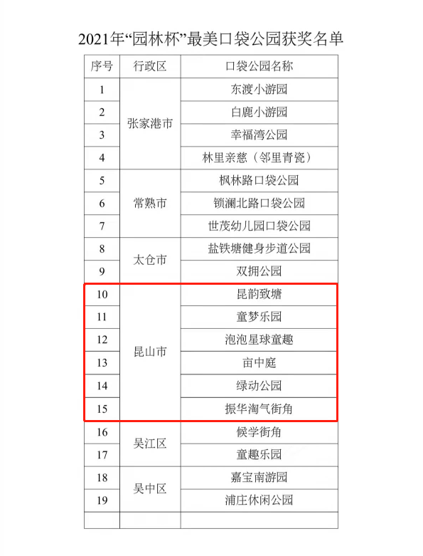 昆山市6个口袋公园获评“苏州最美”
