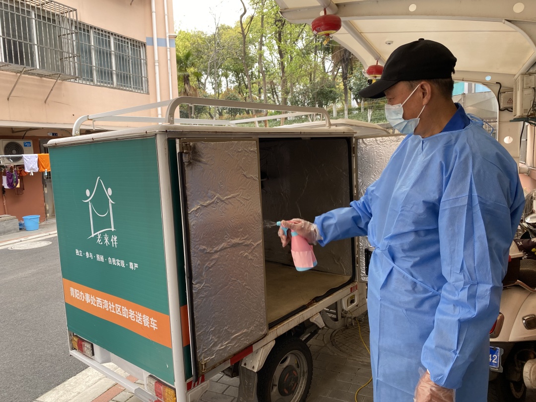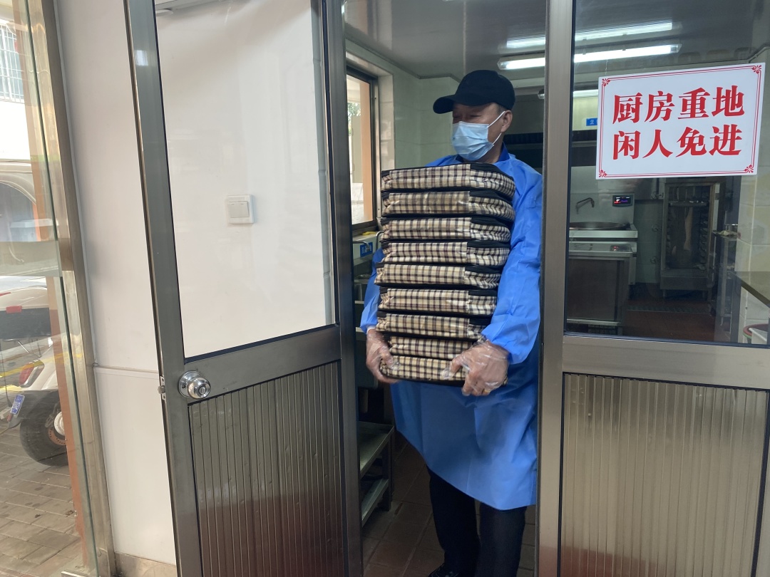 “我早上5点多到这里,会先把送餐车消毒,再帮厨。”范雪元告诉记者,每天按时把饭菜送到老人手中,是他最开心的事情。