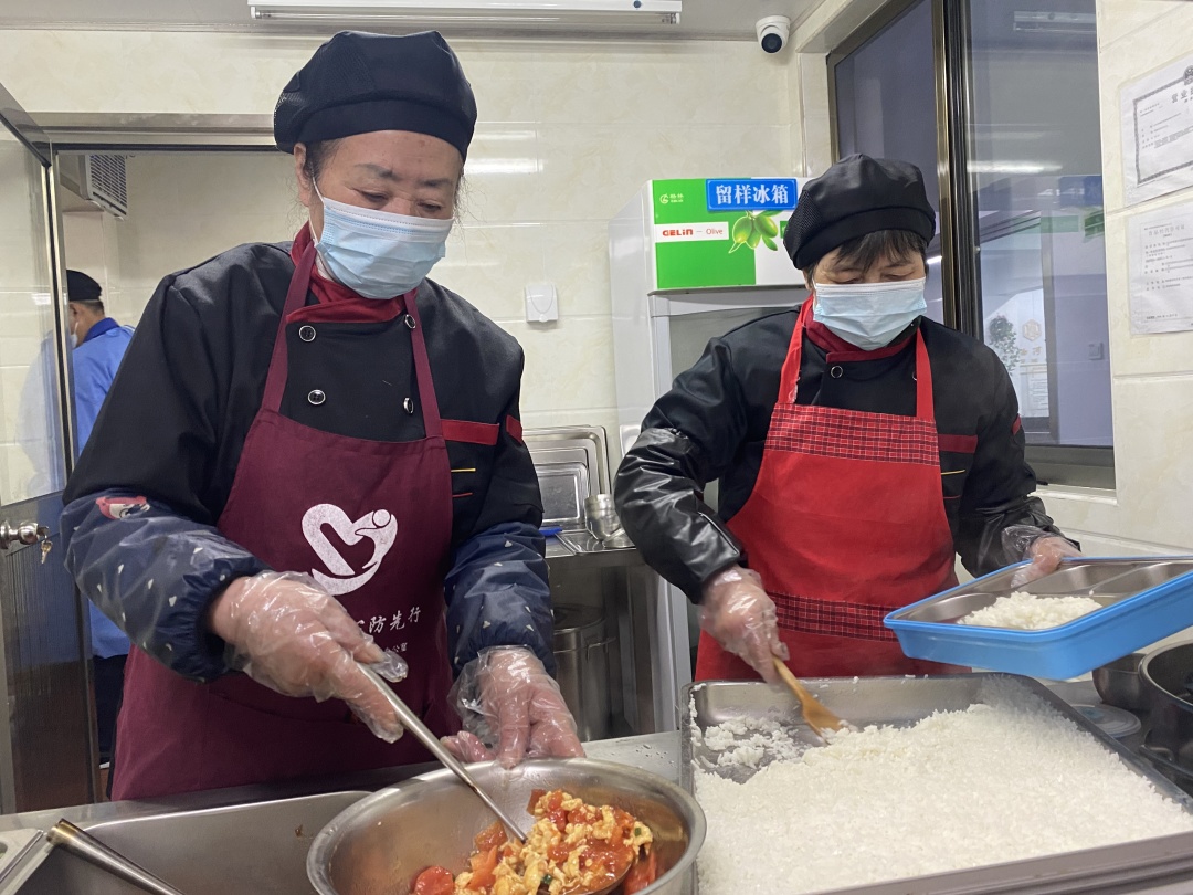 28日,记者在西河社区日间照料中心看到,厨房环境干净整洁,桌子上整整齐齐地摆放着近40个保温饭盒。上午九点多,范雪元正忙着把同事刚烧好的热菜分装,为老人们配餐。“中心工作人员每天都会进行核酸检测,并严格把控采购和场内消毒工作,严选新鲜食材,停用冷冻类食材。”西河社区日间照料中心负责人戴京晶介绍,目前采取一对一保温餐盒送餐形式,对饭菜进行统一分装,一对一配送到老人家里,避免送餐用餐过程中出现交叉感染。