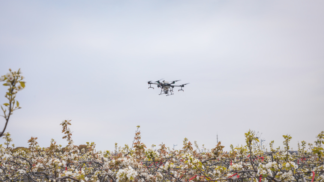 在位于张浦的森生达果业基地,朵朵梨花簇团挂满枝头。工作人员配制好营养液,灌注到无人机的机舱里,再由专业人员操纵无人机飞到果园上空进行喷洒。无人机均匀、精准的喷洒技术,能提高授粉率,一天可以喷洒近百亩。森生达果业基地负责人吴萍芳对无人机授粉的高效率赞叹不已,并表示:“无人机授粉相比人工授粉更省事省力,喷洒精准、均匀,极大节省了人工,节约劳动成本。”