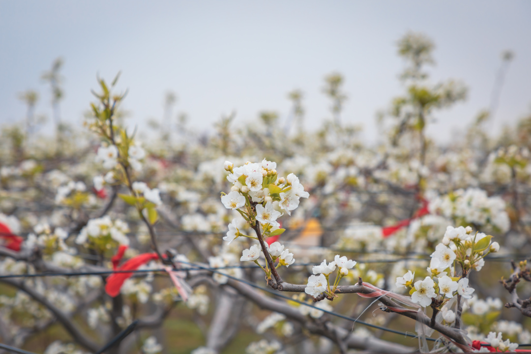 正值梨花授粉关键期