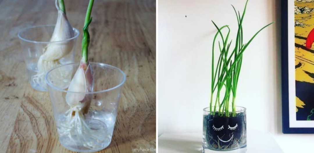 准备丢掉的小葱根部(保证剩余五至六厘米)、容器、适量水