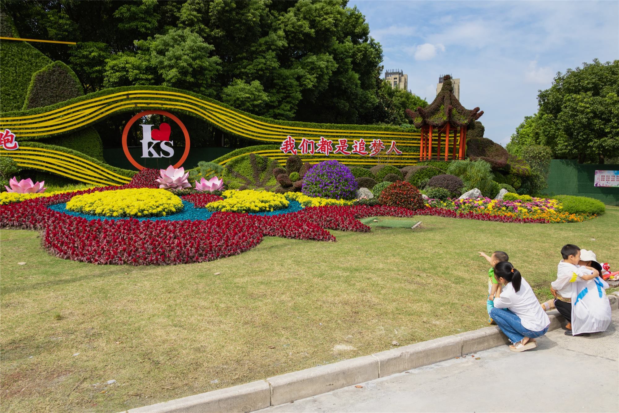 园林部门在公园广场、街角路口等74个点位布置了绿雕、景观小品。预计9月28日完成全市国庆景观布置。“我们在绿化景观中加入‘欢度国庆’‘喜迎国庆’‘我爱昆山’等字体造型设计,同时融合夜景灯光、昆曲文化等元素,庆祝美好佳节的到来。”市住建局绿化办工作人员牛东娟说。