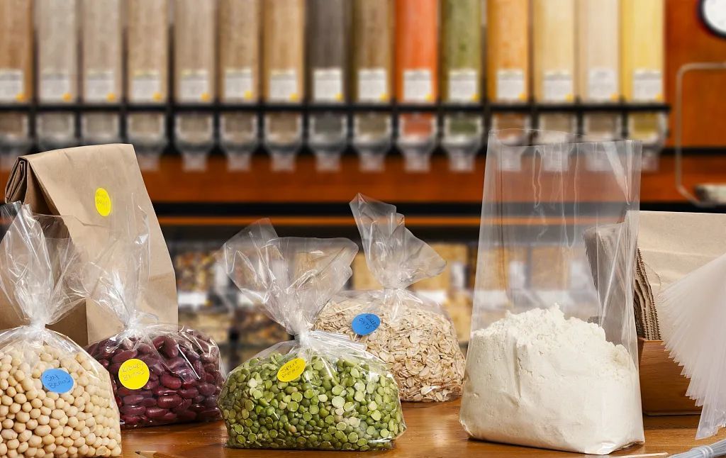 食品的塑料袋一般来是2号HDPE材质的,而食品保鲜膜一般是4号LDPE材质的,这两种材质是超市食品区最常见的塑料了。