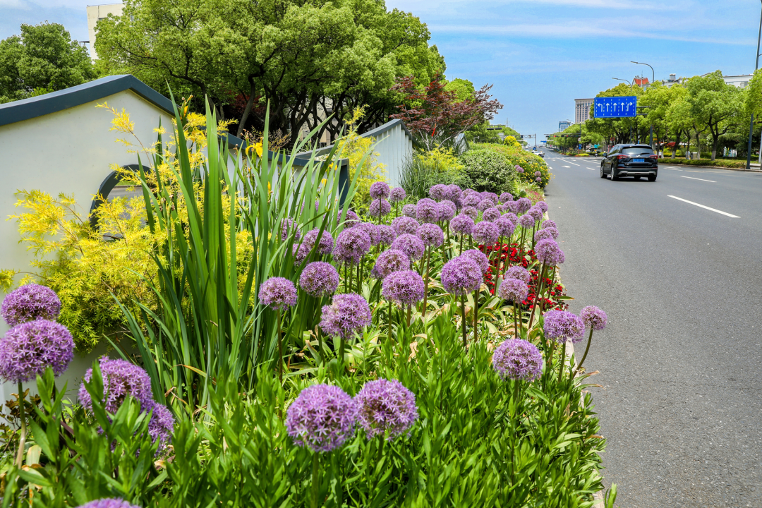 路边的花草对着我们微笑