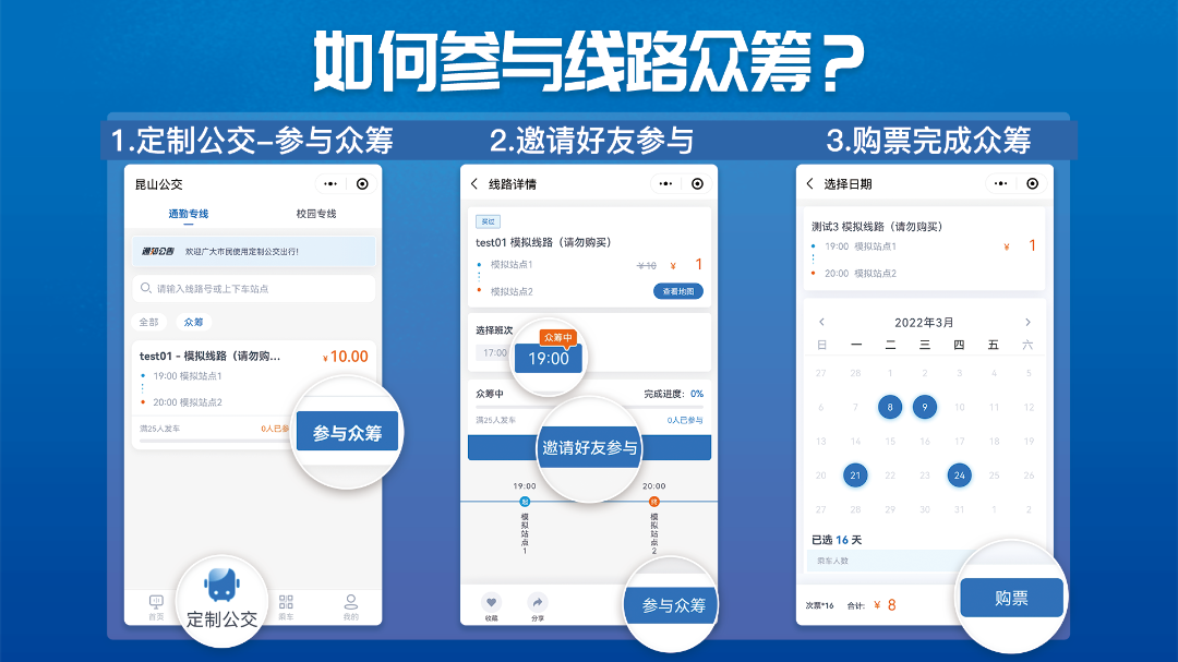 运营人员将通知参与发起的市民参加线路众筹,而后当线路预售达到营运人数,即有机会成功开通定制公交线路。