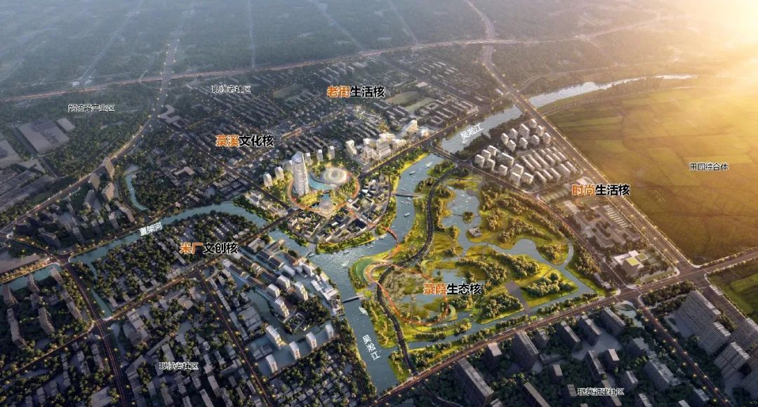 优化城市空间,精准把握区域功能业态与空间布局,合理布局美术馆、图书馆、音乐厅等市级文化场馆,同步引入滨水商业、酒店会议、商务办公等新功能业态,打造集文化传媒、文物展示、艺术交流、滨水游憩与配套服务于一体的城市核心功能集聚区,展现水乡城市精致现代的特色风貌。