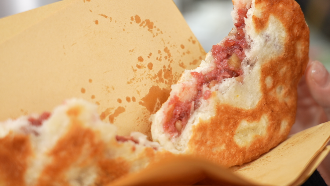 酒酿饼的外观与月饼相似,但口味截然不同,区别在于制皮的工艺。红英从小跟随父母做糕点,至今已有近35年。她介绍,酒酿饼之所以只能吃春天一季,是因为制作酒酿饼的面团很有讲究,需拌入酒酿发酵大约3小时后,等面团发酵到约2倍大才行,现在这个时候的气温是最适合酒酿饼发酵的。做好酒酿饼,关键在酒酿,由于酒酿本身带有甜味,因此发酵后的面团也散发着淡淡的清香。