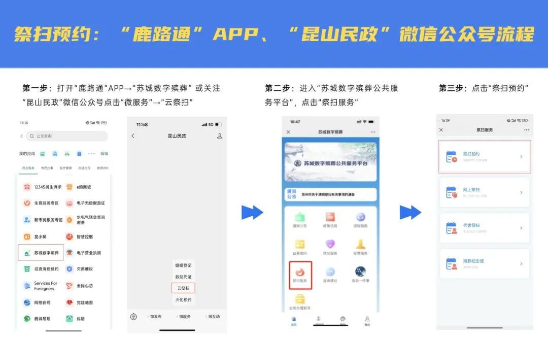 方式1:“鹿路通”APP、“昆山民政”微信公众号预约