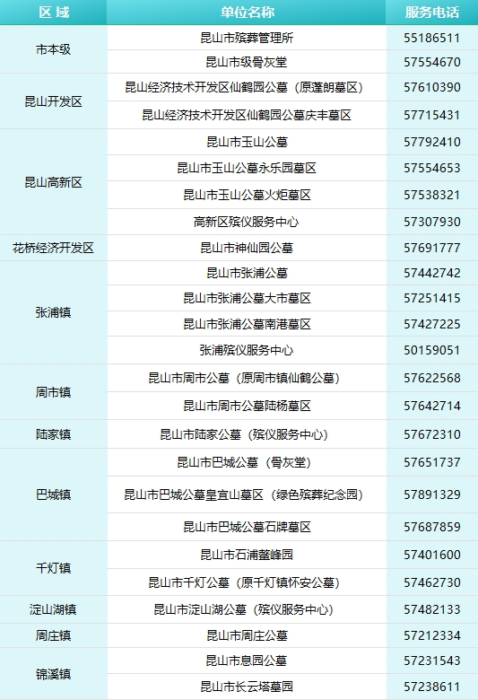 二、各公墓咨询服务电话(请在工作时间拨打9:00~17:00)