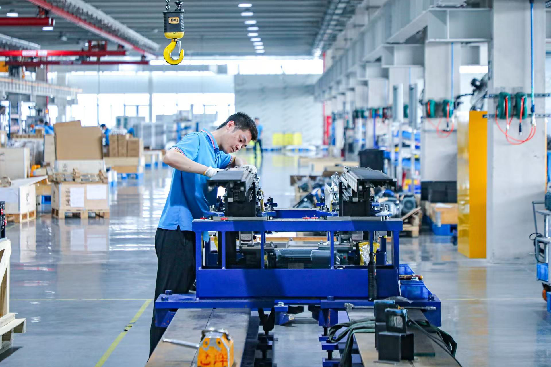 走进该项目崭新的智能化厂房,眼前一派繁忙景象。重型行吊在轨道上平稳滑行,将仓储设备部件准确吊装到位;悬挂输送线有条不紊进行载重测试,确保设备运行万无一失。地面上,搭载着精密工件的AGV小车(自动导引运输车)沿着预设路线穿行,将物料精准配送至组装工位。在智能升降设备的生产区域,工程师们操控着精密的装配台,确保每月近150台的产能稳定输出到全球客户手中,整个厂区涌动着科技赋能制造的澎湃动能。
