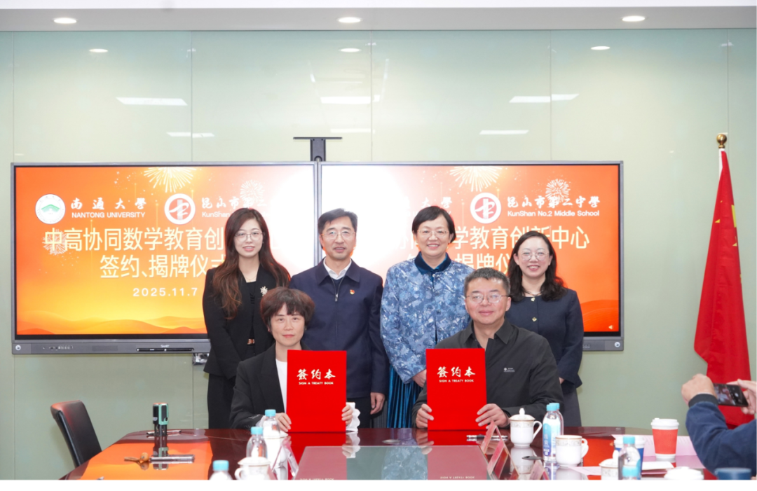 11月7日,南通大学与昆山市第二中学“中高协同数学教育创新中心”揭牌仪式举行,现场签署了《南通大学教学实践基地共建协议书》、“中高协同数学教育创新中心”揭牌,标志着两校将携手共进,推动数学教育创新走向深入,为培养新时代高素质数学人才贡献力量。
