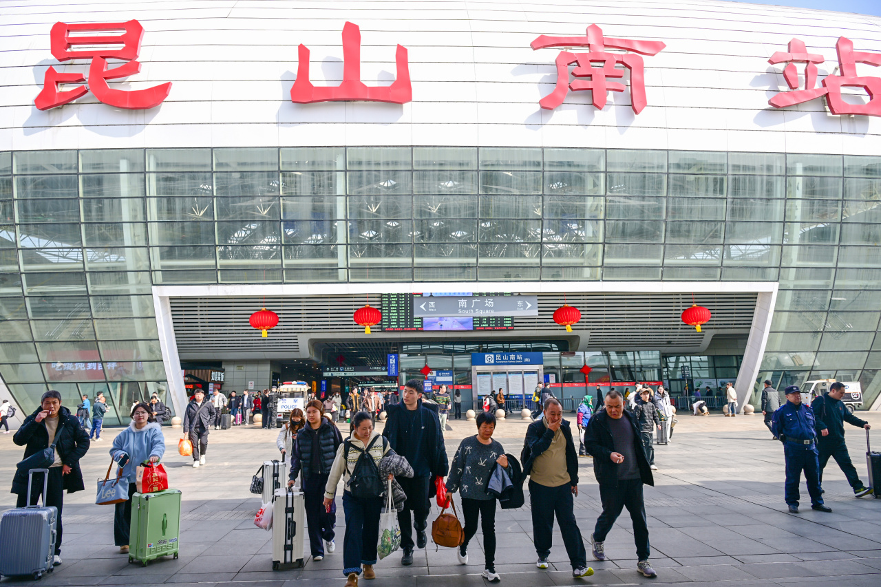为应对激增客流,昆山南站增开临客24趟。昆山站结合春运需求,候车室调整为24小时开放。针对返程车流集中、易拥堵的特点,昆山优化高速出入口、国省道路口交通疏导,依托各类监管平台开展“两客一危”车辆动态监管,实时排查道路安全隐患,常态化开展全域公路巡查,快速处置路面各类突发问题,全力保障道路通行有序。各站点优化客流疏导机制,加密重点区域巡查频次,确保设备正常运行、客流有序通行。春节假期,所有公交线路免费运营,无缝衔接铁路、地铁客流,让市民返程更便捷、更省心。