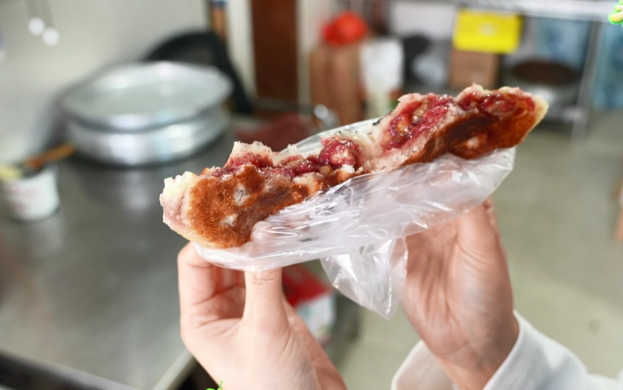 春日限定的酒酿饼是红英最引以为傲的“时令之作”。为了捕捉最纯粹的春味,她坚持“不时不食”的古训,严格把控每一个环节。面团必须拌入自酿米酒,在早春微凉的空气中自然醒发约三小时,直至体积膨胀至两倍大,才能确保口感中带着酒香和清甜。馅料选用上乘玫瑰与豆沙,辅以秘制猪油提香,今年又增加了很多人喜爱的坚果,经小火慢烙至两面金黄。火候的拿捏分毫必较,出锅时,饼皮微脆、内里软韧,猪油的醇香与酒酿的清甜在口中完美融合,甜而不腻。