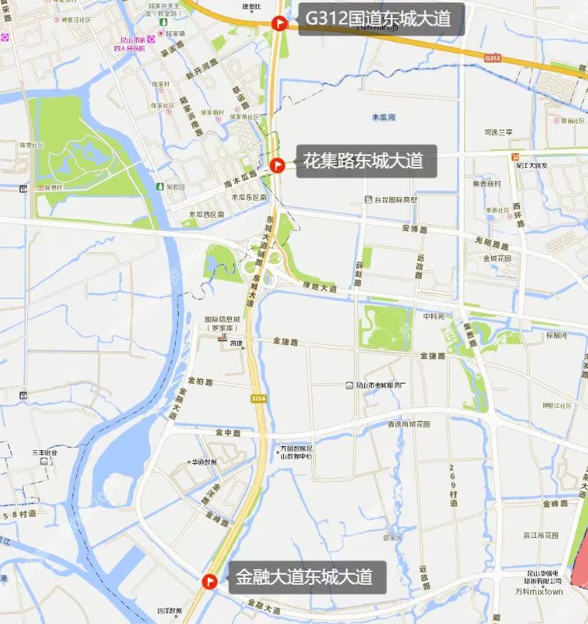 △花桥312国道东城大道、花集路东城大道、金融大道东城大道交通卡口示意图