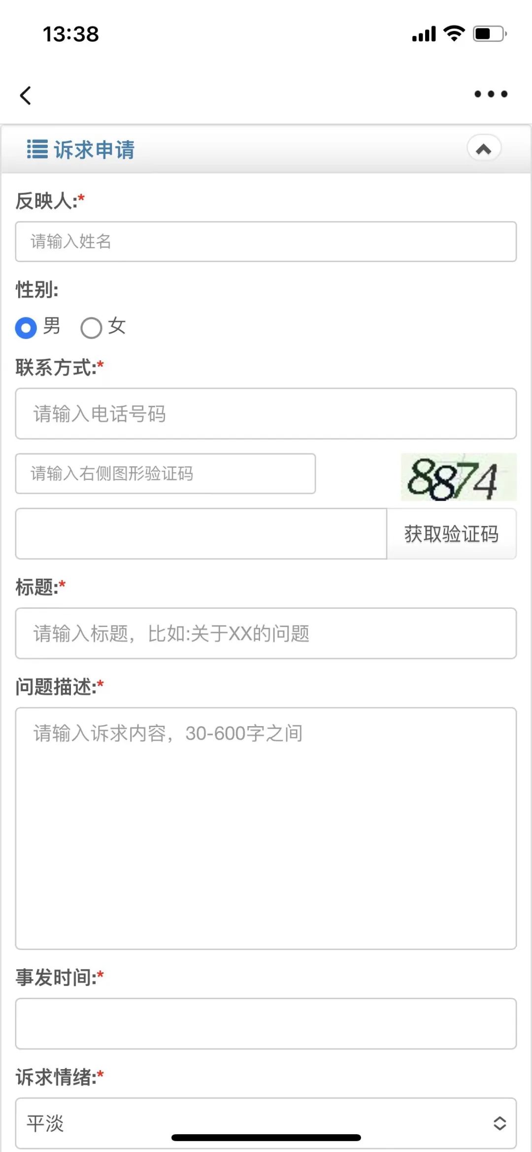 线上提交诉求