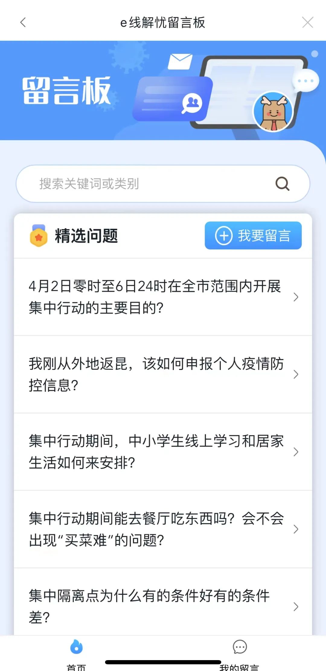 进入e线解忧留言板页面后